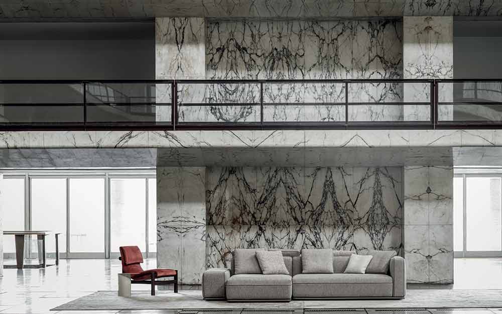 The new Frigerio collection finds its perfect stage in the photo shots taken inside a signature Italian architecture. The Palazzo dei Congressi, located in Rome’s EUR district and designed in the late 1930s by architect Adalberto Libera, is a significant example of rationalist architecture. A building that is the meeting point between modernity and classic taste, where the white marble and timeless elegance of the interiors highlight the contemporary Italian design of Frigerio’s furnishings through the new catalogue “The Next Step Collection”.